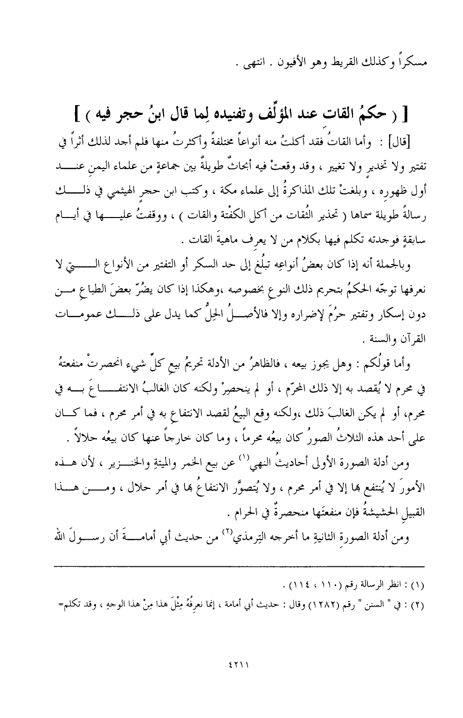[(حكمُ القات عند المؤلِّف وتفنيده لما قال ابنُ حجر فيه)]
