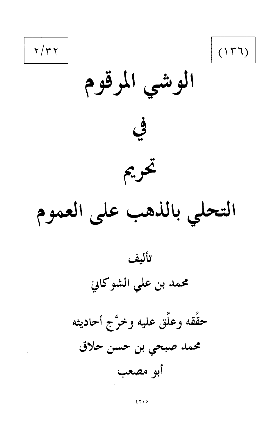 الوشي المرقوم في تحريم التحلي بالذهب على العموم