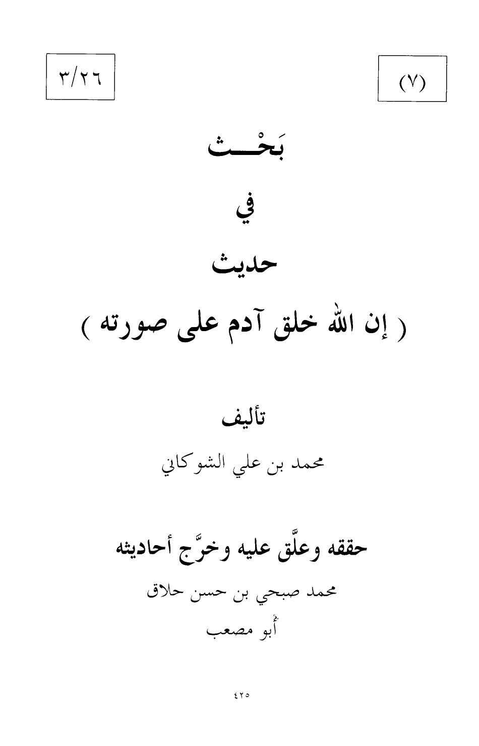 حققه وعلق وخرج أحاديثه
