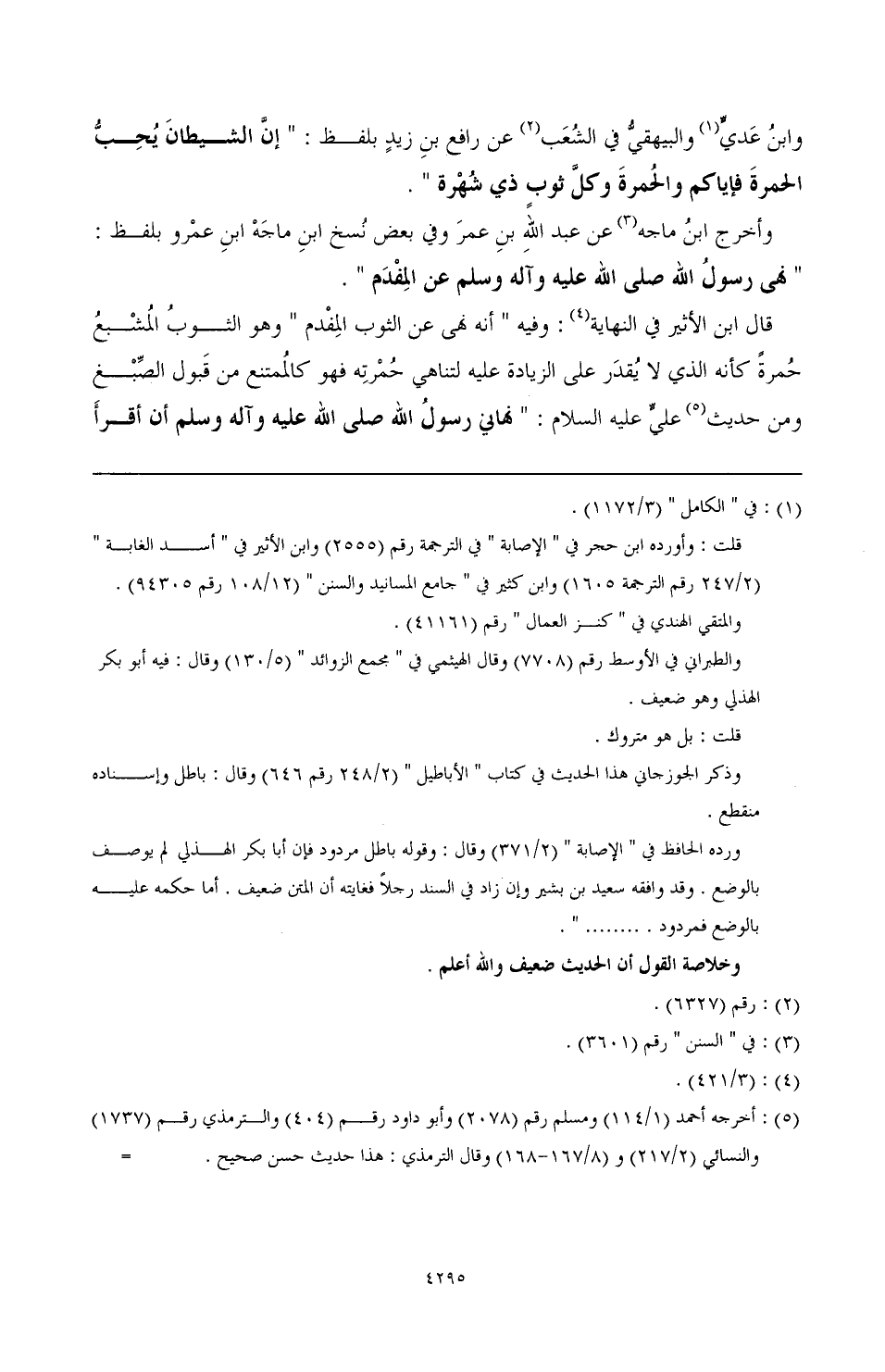 وابن عدي (¬1) والبيهقي في الشعب (¬2) عن رافع بن زيد بلفظ: " إن الشيطان يحب الحمرة، فإياكم والحمرة وكل ثوب ذي شهرة ".