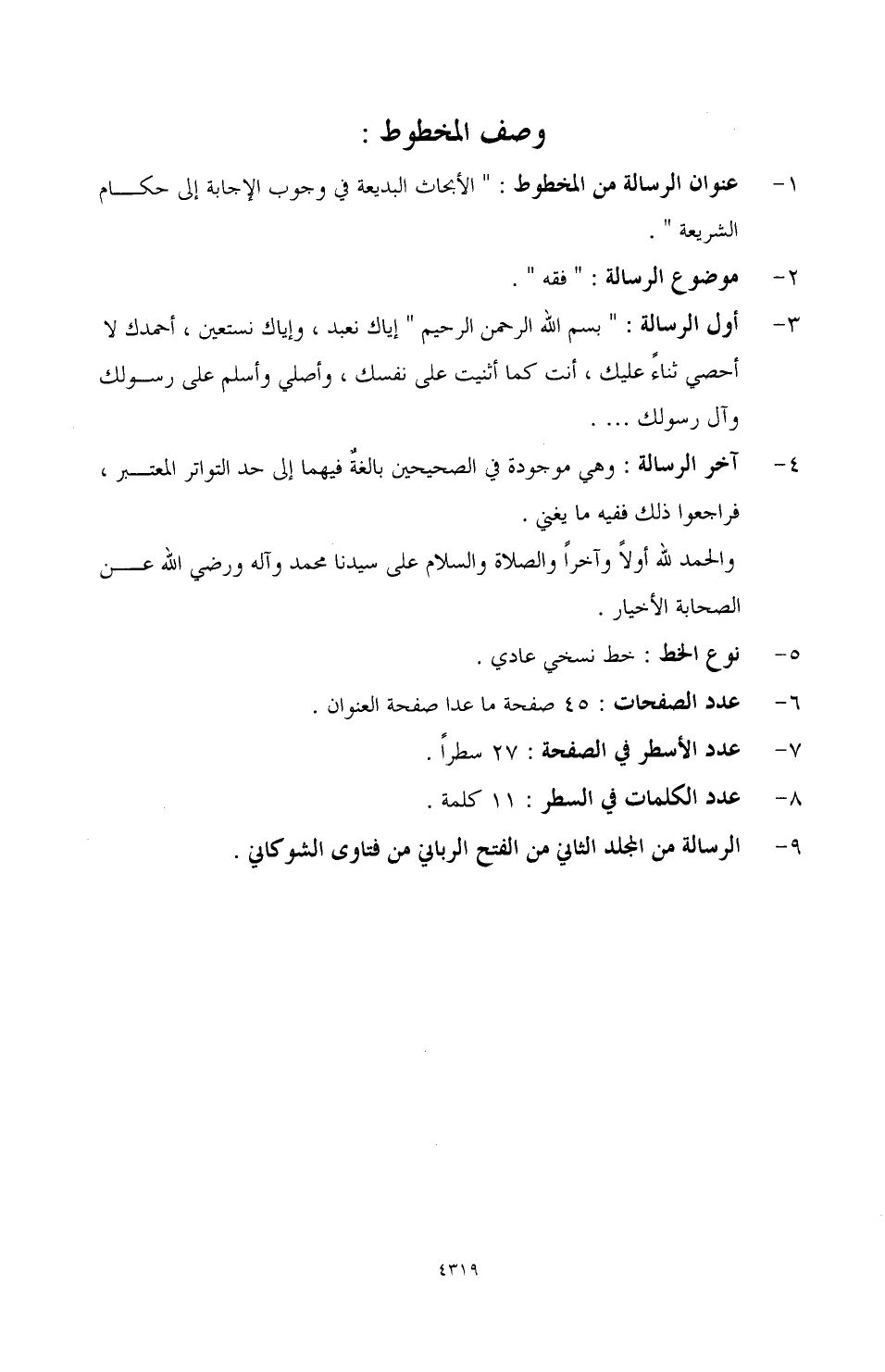 9 - الرسالة من المجلد الثاني من الفتح الرباني من فتاوى الشوكاني.