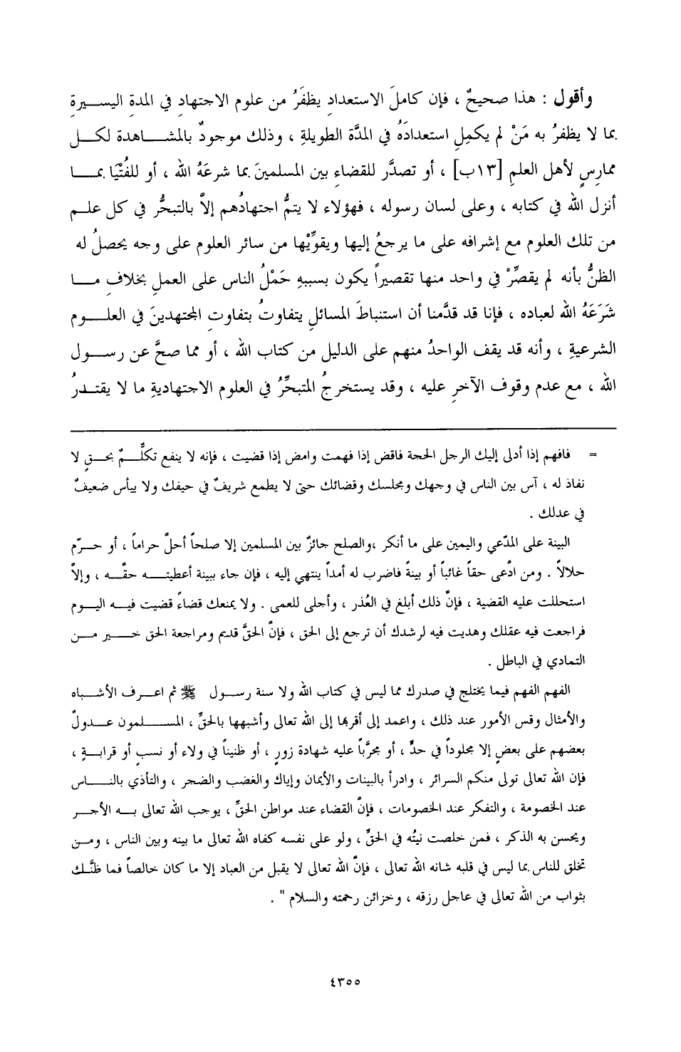وأقول: هذا صحيح، فإن كامل الاستعداد يظفر من علوم الاجتهاد في المدة اليسيرة بما لا يظفر به من لم يكمل استعداده في المدة الطويلة، وذلك موجود بالمشاهدة لكل ممارس لأهل العلم [13ب]، أو تصدر للقضاء بين المسلمين بما شرعه الله، أو للفتيا بما أنزل الله في كتابه، وعلى لسان رسوله، فهؤلاء لا يتم اجتهادهم إلا بالتبحر في كل علم من تلك العلوم مع إشرافه على ما يرجع إليها ويقويها من سائر العلوم على وجه يحصل له الظن بأنه لم يقصر في واحد منها تقصيرًا يكون بسببه حمل الناس على العمل بخلاف ما شرعه الله لعباده، فإنا قد قدمنا أن استنباط المسائل يتفاوت بتفاوت المجتهدين في العلوم الشرعية، وأنه قد يقف الواحد منهم على الدليل من كتاب الله، أو مما صح عن رسول الله، مع عدم وقوف الآخر عليه، وقد يستخرج المتبحر في العلوم الاجتهادية ما لا يقتدر
