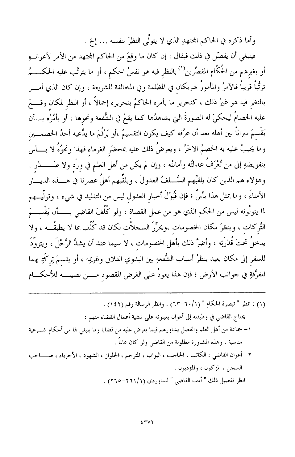 (¬1) انظر " تبصرة الحكام " (1/ 60 - 63). وانظر الرسالة رقم (142).