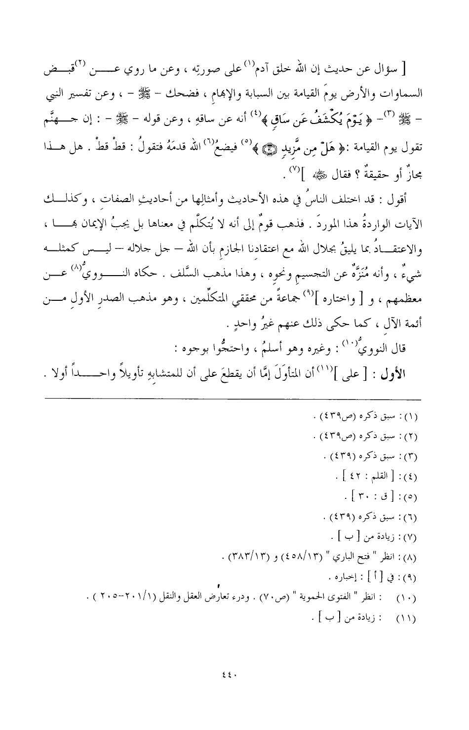 (¬10) نظر " الفتوى الحموية " (ص70). ودرء تعارض العقل والنقل (1/ 201 - 205).