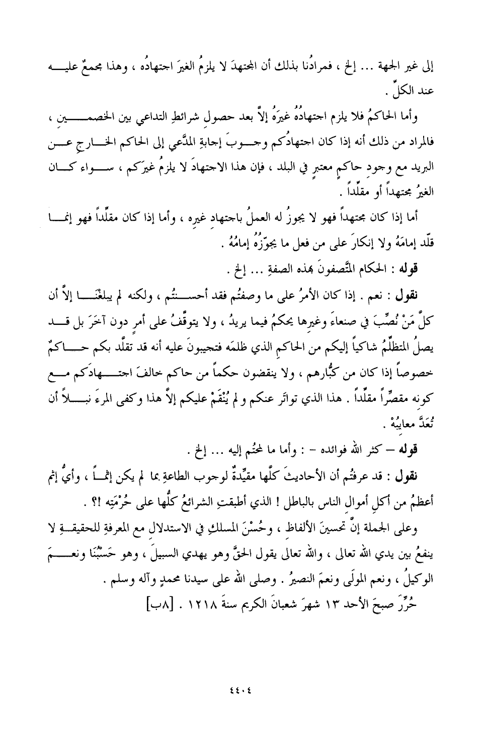 حرر صبح الأحد 13 شهر شعبان الكريم سنة 1218. [8ب]