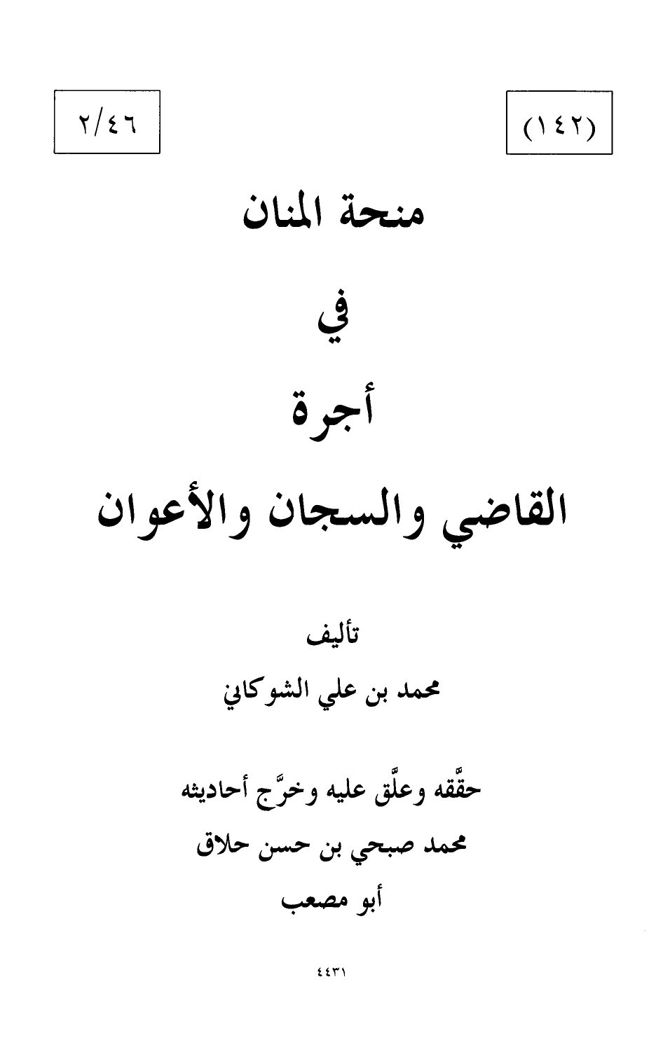 منحة المنان في أجرة القاضي والسجان والأعوان