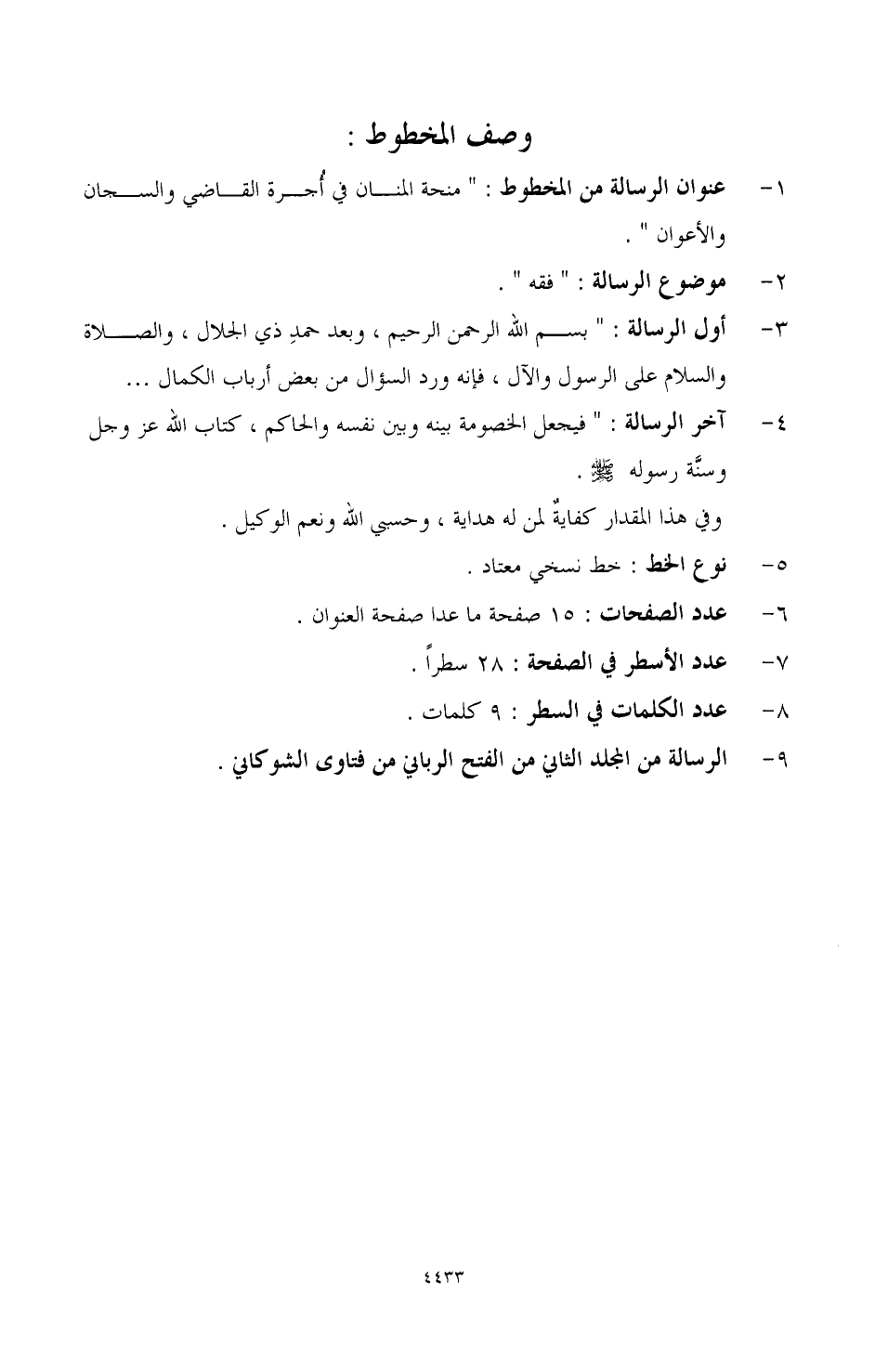 9 - الرسالة من المجلد الثاني من الفتح الرباني من فتاوى الشوكاني.