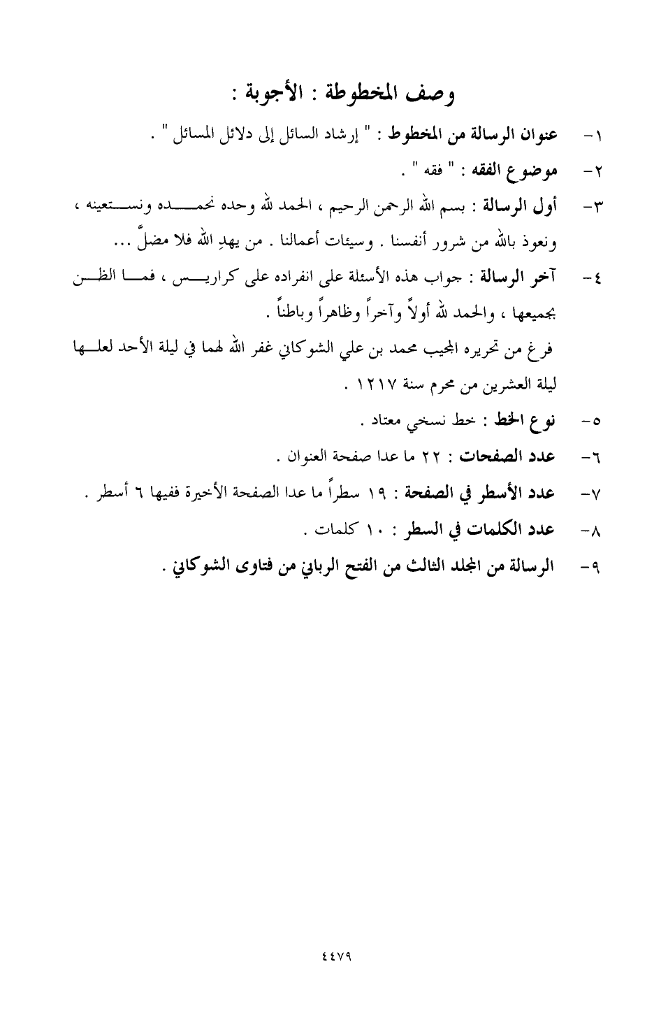 9 - الرسالة من المجلد الثالث من الفتح الرباني من فتاوى الشوكاني.
