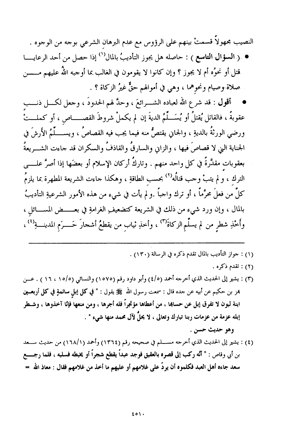 (¬1) جواز التأديب بالمال تقدم ذكره في الرسالة (130).