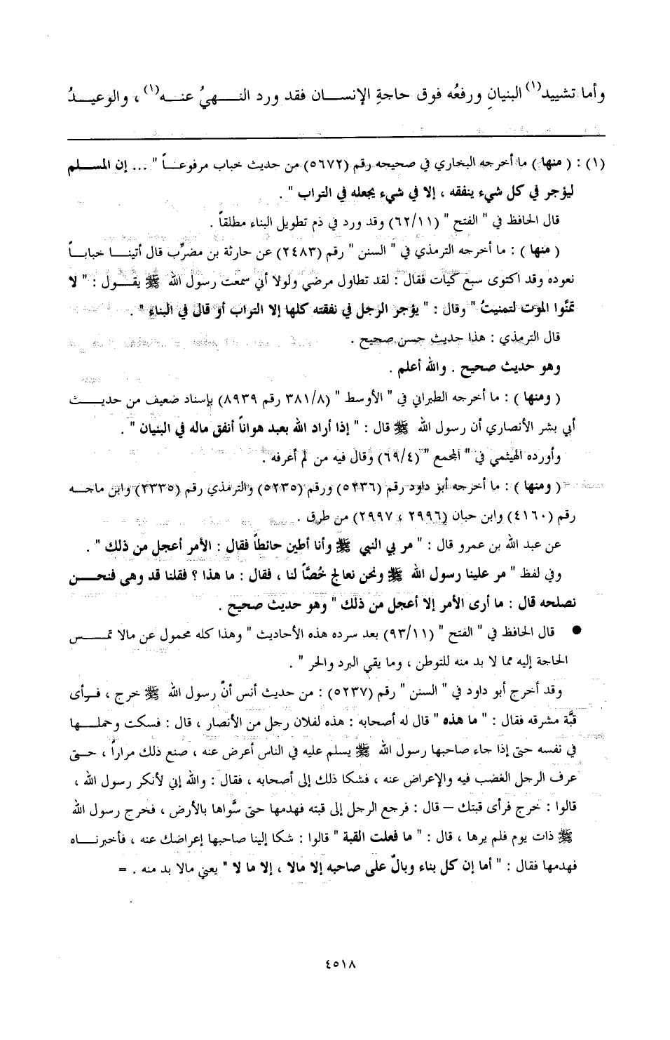 قال الحافظ في " الفتح " (11/ 62) وقد ورد في ذم تطويل البناء مطلقًا.
