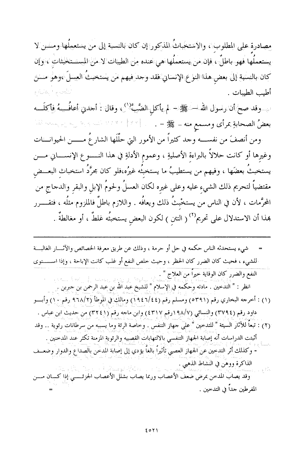 ومن أنصف من نفسه وجد كثيرًا من الأمور التي حللها الشارع من الحيوانات وغيرها، أو كانت حلالاً بالبراءة الأصلية، وعموم الأدلة في هذا النوع الإنساني من يستخبث بعضها، وفيهم من يستطيب ما يستخبثه غيره، فلو كان مجرد استخباث البعض مقتضيًا لتحريم ذلك الشيء عليه وعلى غيره لكان العسل ولحوم الإبل والبقر والدجاج من المحرمات، لأن في الناس من يستخبث ذلك ويعافه. واللازم باطل فالملزوم مثله، فتقرر بهذا الاستدلال على تحريم (¬2) (التتن) لكون البعض يستخبثه غلط، أو مغالطة.