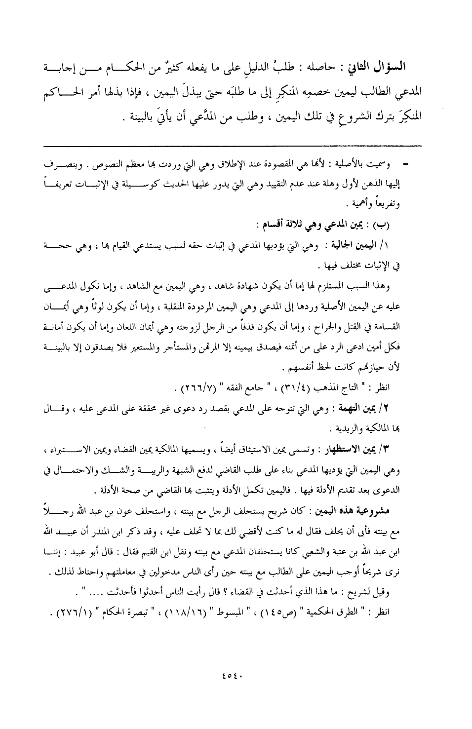 السؤال الثاني: حاصله: طلب الدليل على ما يفعله كثير من الحكام من إجابة المدعي الطالب ليمين خصمه المنكر إلى ما طلبه حتى يبذل اليمين، فإذا بذلها أمر الحاكم المنكر بترك الشروع في تلك اليمين، وطلب من المدعي أن يأتي بالبينة.
