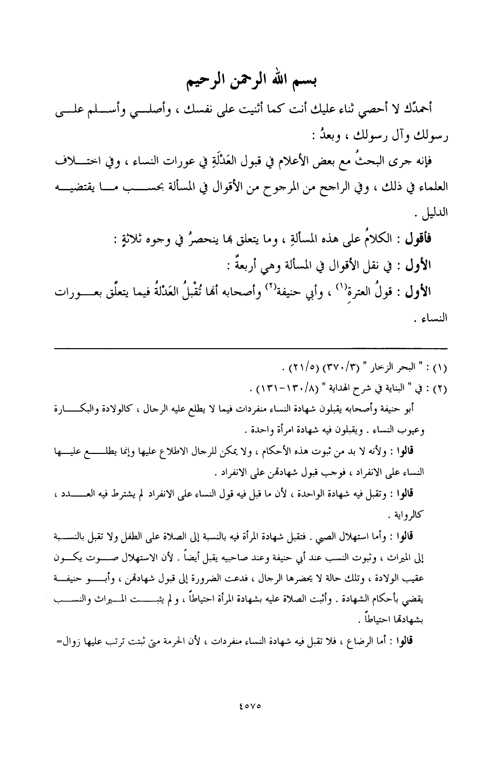الأول: قول العترة (¬1)، وأبي حنيفة (¬2) وأصحابه أنها تقبل العدلة فيما يتعلق بعورات النساء.