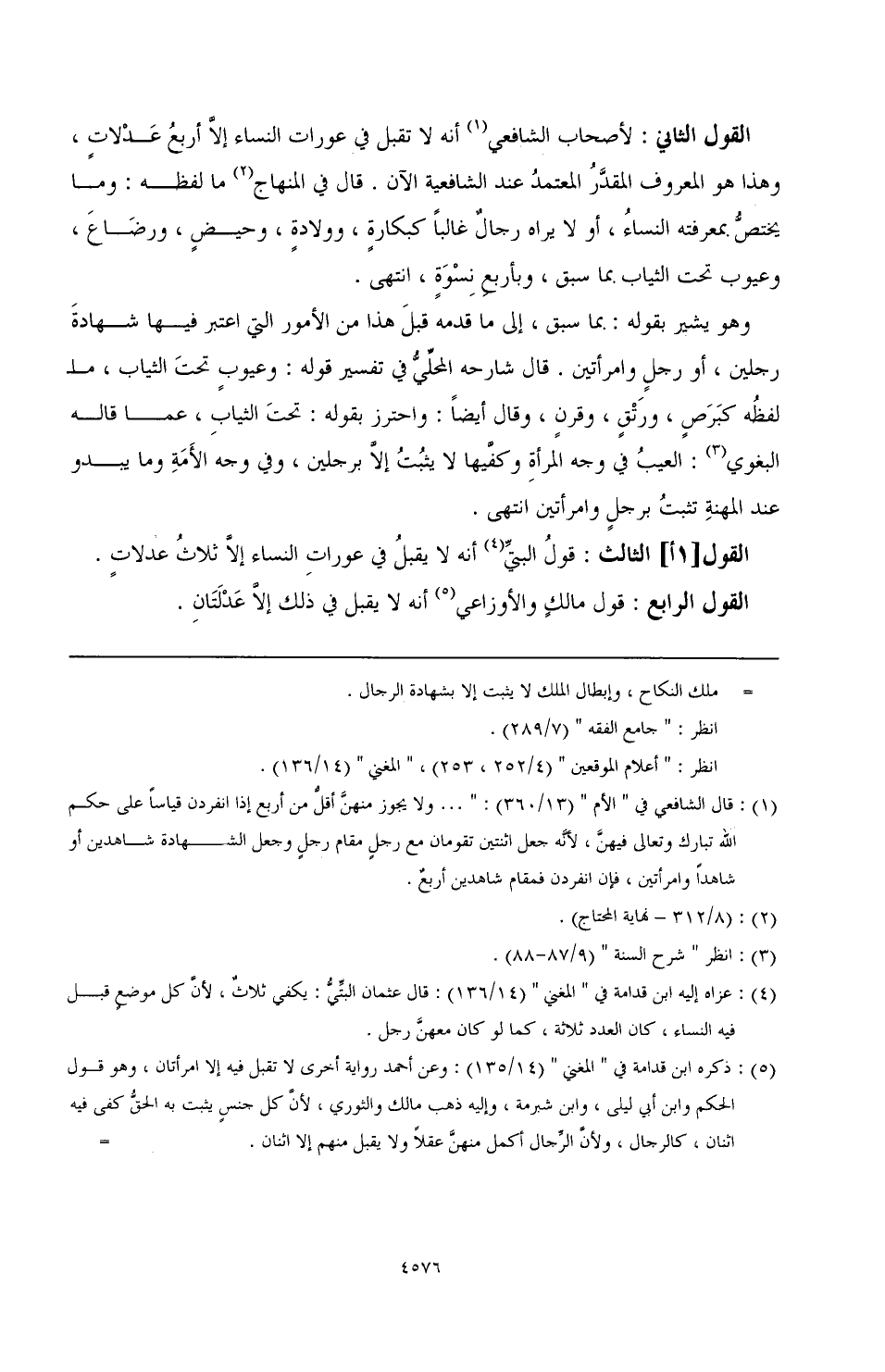 القول الرابع: قول مالك والأوزاعي (¬5) أنه لا يقبل في ذلك إلا عدلتان.