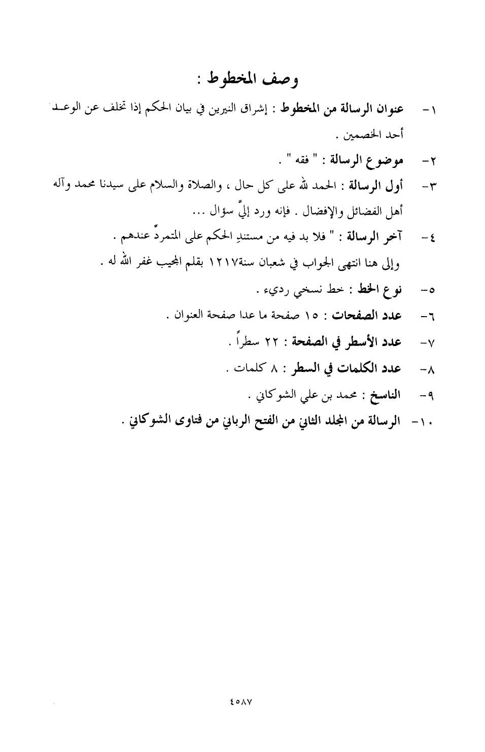 10 - الرسالة من المجلد الثاني من الفتح الرباني من فتاوى الشوكاني.