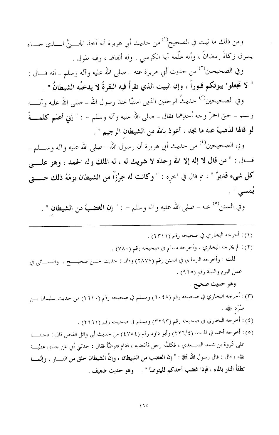 (¬5) أخرجه أحمد في المسند (4/ 226) وأبو داود رقم (4784) من حديث أبي وائل القاص قال: دخلنا على عروة بن محمد السعدي، فكلمه رجل فأغضبه، فقام فتوضأ فقال: حدثني أبي عن جدي عطية رضي الله عنه، قال: قال رسول الله صَلَّى اللهُ عَلَيْهِ وَسَلَّمَ: "إن الغضب من الشيطان خلق من النار، وإنما تطفأ النار بالماء، فإذا غضب أحدكم فليتوضأ". وهو حديث ضعيف.
