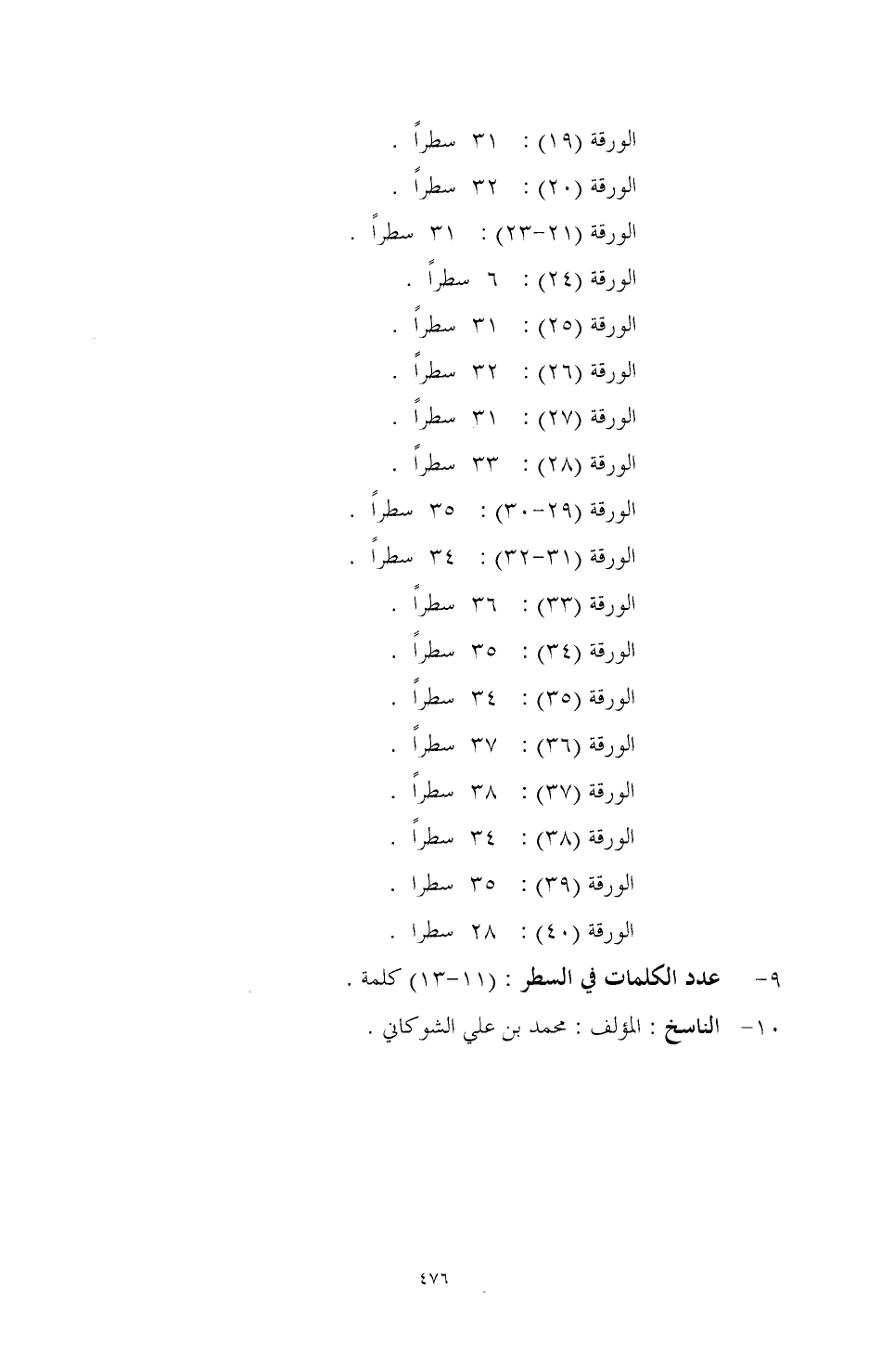 9 - عدد الكلمات في السطر: (11 - 13) كلمة.