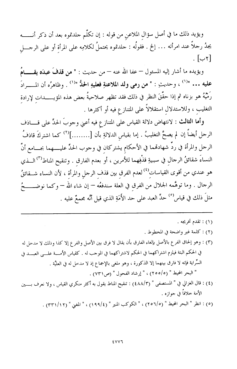 .] (¬3) كما اشترك قاذف الرجل والمرأة في رد شهادتهما في الأحكام يشتركان في وجوب الحد عليهما بجامع أن النساء شقائق الرجال في سببية قذفهما للأمرين، أو بعدم الفارق. وتنقيح المناط (¬4) الذي هو عندي من أقوى القياسات (¬5) لعدم الفرق بين قذف الرجل والمرأة، لأن النساء شقائق الرجال، وما توهمه الجلال من الفرق في العلة سندفعه - إن شاء الله - وكما نوضح مثل ذلك في قياس (¬6) حد العبد على حد الأمة الذي قيل: إنه مجمع عليه.