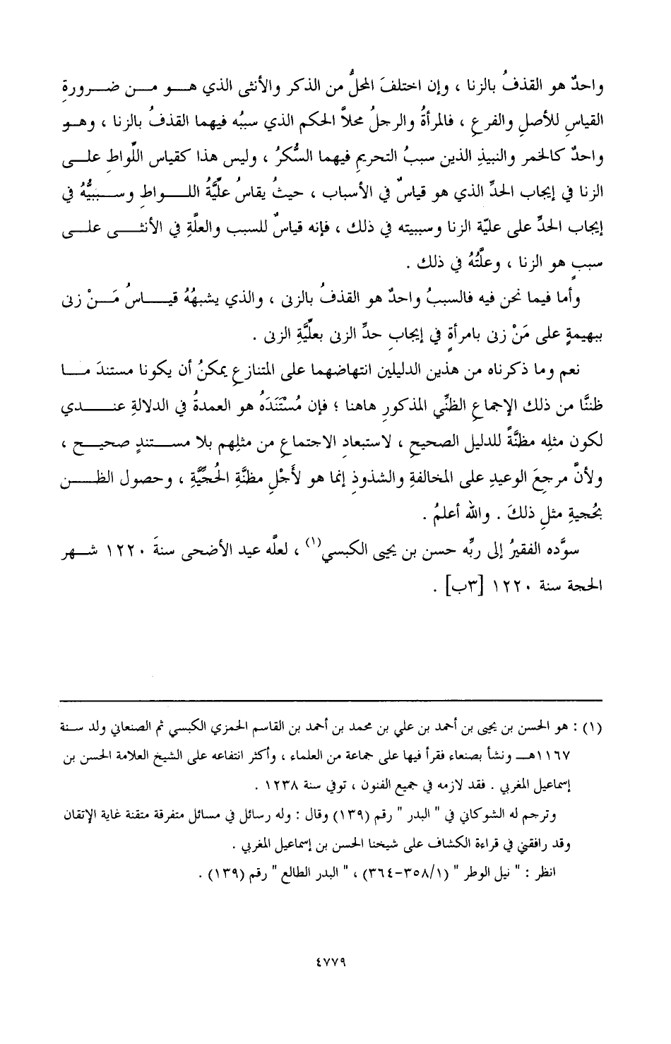 سوده الفقير إلى ربه حسن بن يحيى الكبسي (¬1)، لعله عيد الأضحى سنة 1220 شهر الحجة سنة 1220 [3 ب].