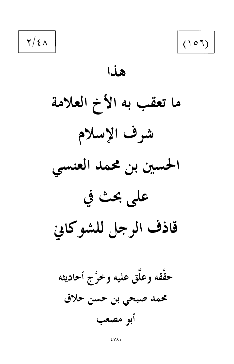 هذا ما تعقب به الأخ العلامة شرف الإسلام الحسين بن محمد العنسي على بحث في قاذف الرجل للشوكاني