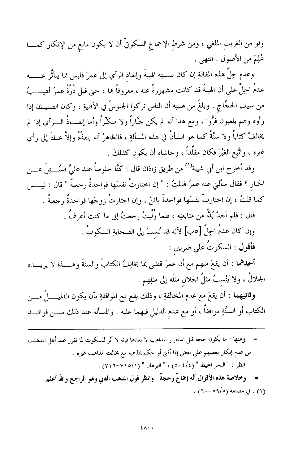 وإن كان عدم الحل [5ب] لأنه قد نسب إلى الصحابة السكوت.