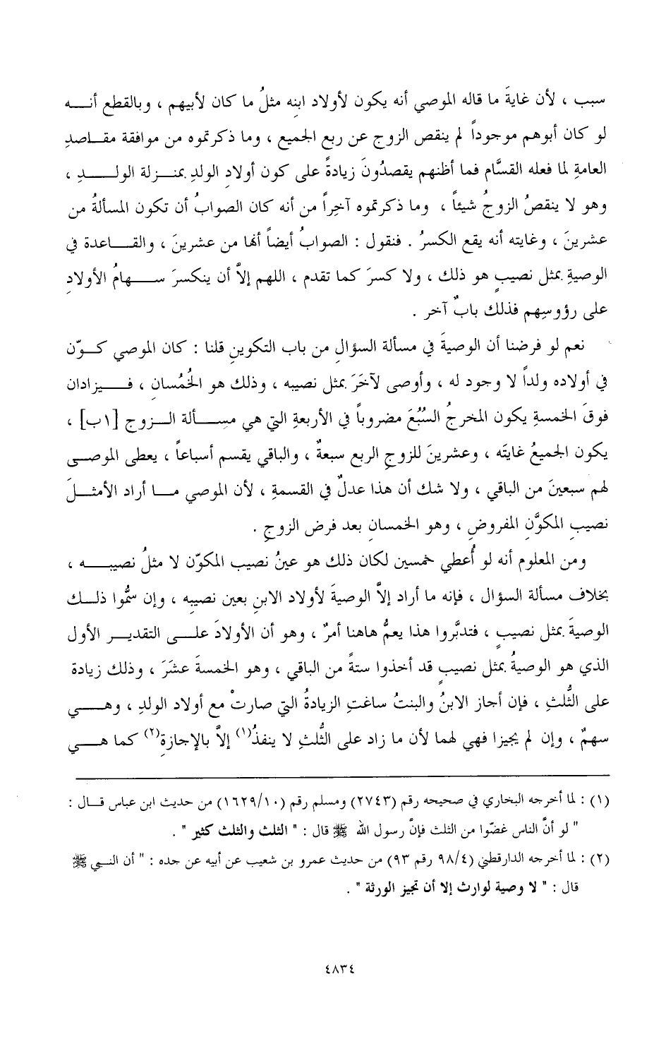 (¬1) لما أخرجه البخاري في صحيحه رقم (2743) ومسلم رقم (10/ 1629) من حديث ابن عباس قال: " لو أن الناس غضوا من الثلث فإن رسول الله صَلَّى اللهُ عَلَيْهِ وَسَلَّمَ قال: الثلث والثلث كثير ".