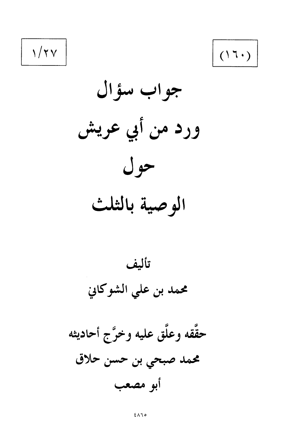 جواب سؤال ورد من أبي عريش حول الوصية بالثلث
