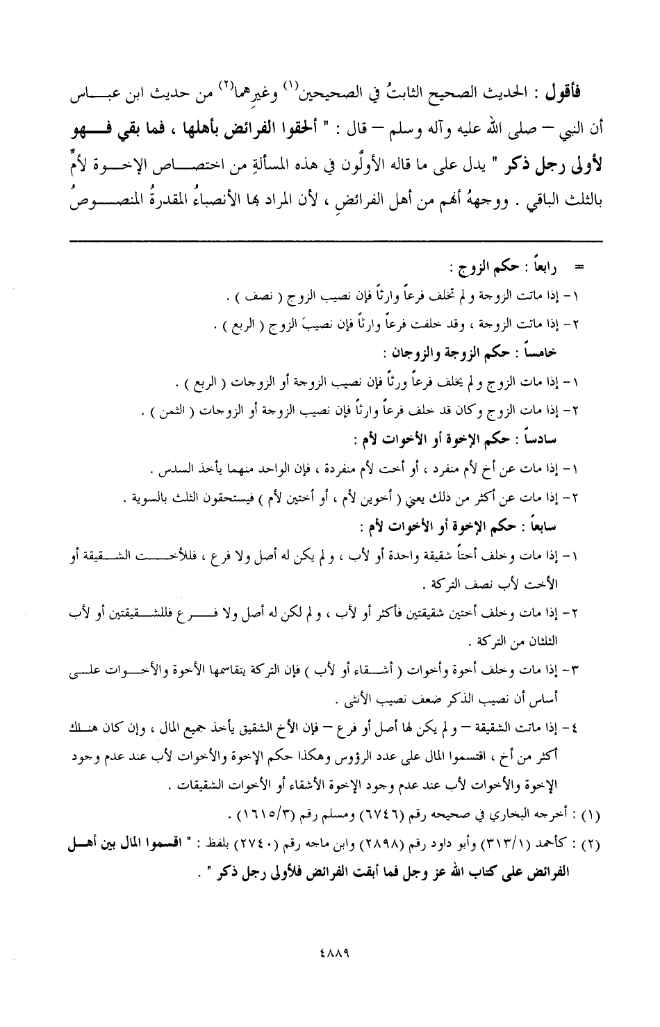 (¬2) كأحمد (1/ 313) وأبو داود رقم (2898) وابن ماجه رقم (2740) بلفظ: "اقسموا المال بين أهل الفرائض على كتاب الله عز وجل فما أبقت الفرائض فالأولى رجل ذكر".