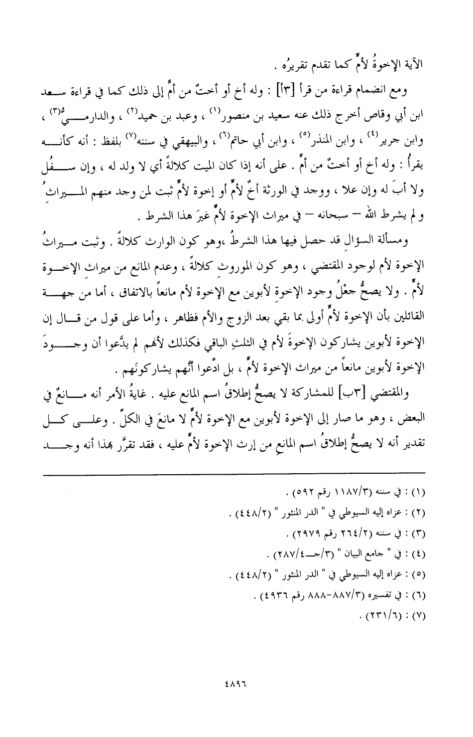 والمقتضي [3ب] للمشاركة لا يصح إطلاق اسم المانع عليه. غاية الأمر أنه مانع في البعض، وهو ما صار إلى الإخوة لأبوين مع الإخوة لأم لا مانع في الكل، وعلى كل تقدير أنه لا يصح إطلاق اسم المانع من إرث الإخوة لأم عليه، فقد تقرر بهذا أنه وجد