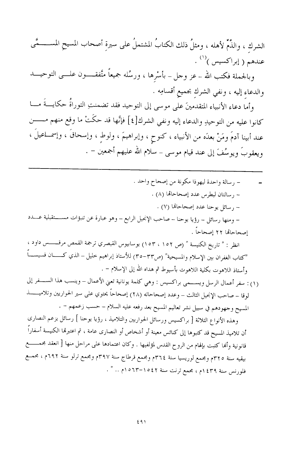 الشرك، والذم لأهله، ومثل ذلك الكتاب المشتمل على سيرة أصحاب المسيح المسمى عندهم (إبراكسيس) (¬1).