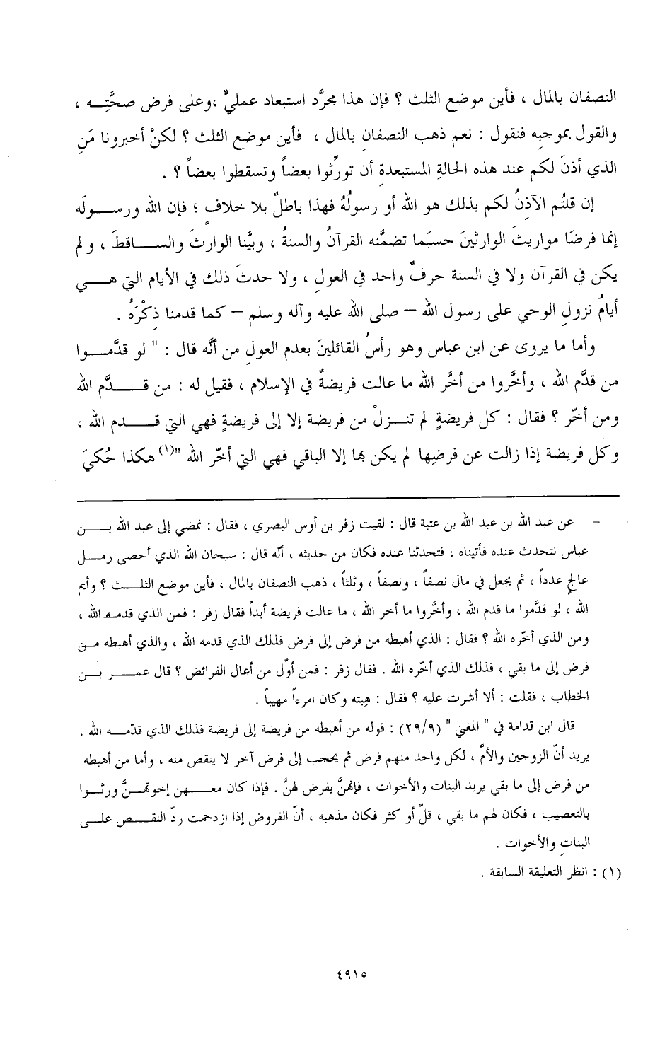 وأما ما يروى عن ابن عباس وهو رأسُ القائلينَ بعدم العولِ من أنَّه قال: "لو قّدَموا من قدَّم الله، وأخَّروا من أخَّر الله" (¬1) هكذا حُكيَ