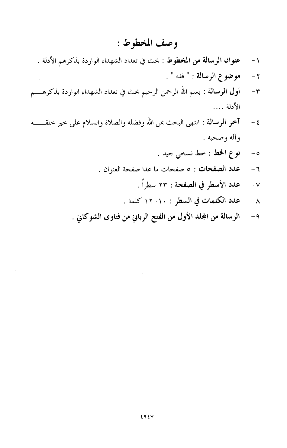 9 - الرسالة من المجلد الأول من الفتح الرباني من فتاوى الشوكاني.
