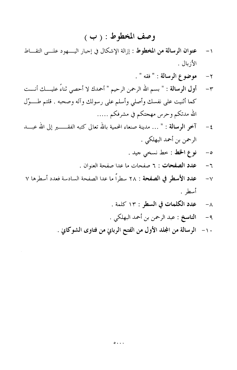10 - الرسالة من المجلد الأول من الفتح الرباني من فتاوى الشوكاني.