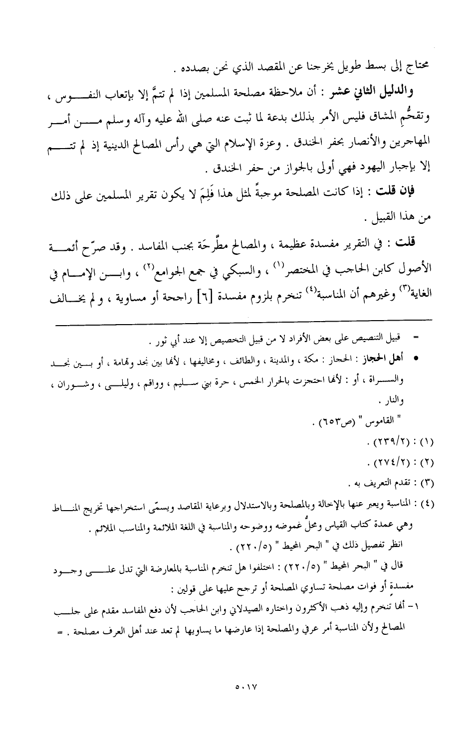والدليل الثاني عشر: أن ملاحظة المسلمين إذا لم تتم إلا بإتعاب النفوس، وتقحم المشاق فليس الأمر بذلك بدعة لما ثبت عنه - صَلَّى اللهُ عَلَيْهِ وَآلِهِ وَسَلَّمَ- من أمر المهاجرين والأنصار بحفر الخندق. وعزة الإسلام التي هي رأس المصالح الدينية إذ لم تتم إلا بإجبار اليهود فهي أولى بالجواز من حفر الخندق.
