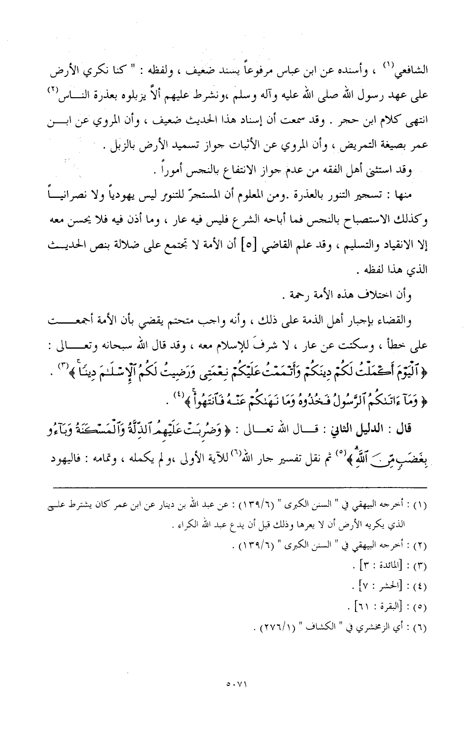 منها: تسجير التنور بالعذرة، ومن المعلوم أن المتسجر للتنور ليس يهوديا ولا نصرانيا وكذلك الاستصباح بالنجس فما أباحه الشرع فليس فيه عار، وما أذن فيه فلا يحسن معه إلا الانقياد والتسليم، وقد علم القاضي [5] أن الأمة لا تجتمع على ضلالة بنص الحديث الذي هذا لفظه.