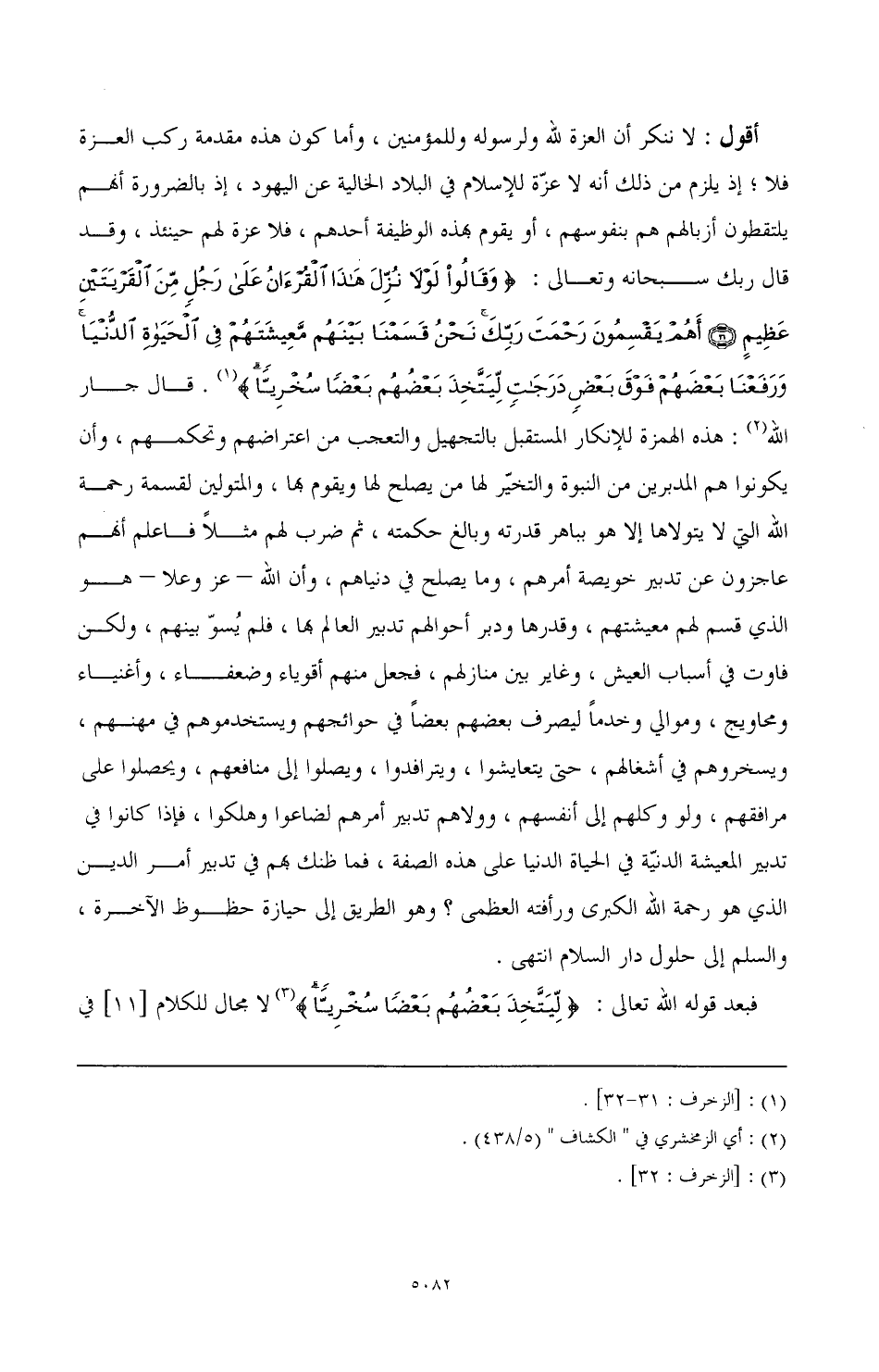 فبعد قوله الله تعالى: {ليتخذ بعضهم بعضًا سخريًا} (¬3) لا مجال للكلام [11] في