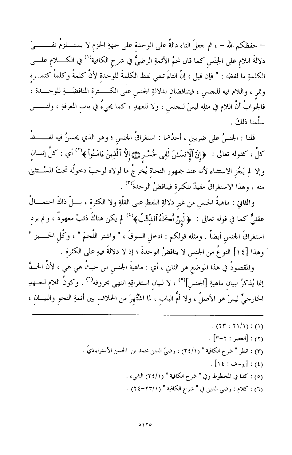 (¬6) كلام: رضي الدين في "شرح الكافية" (1/ 23 - 24).