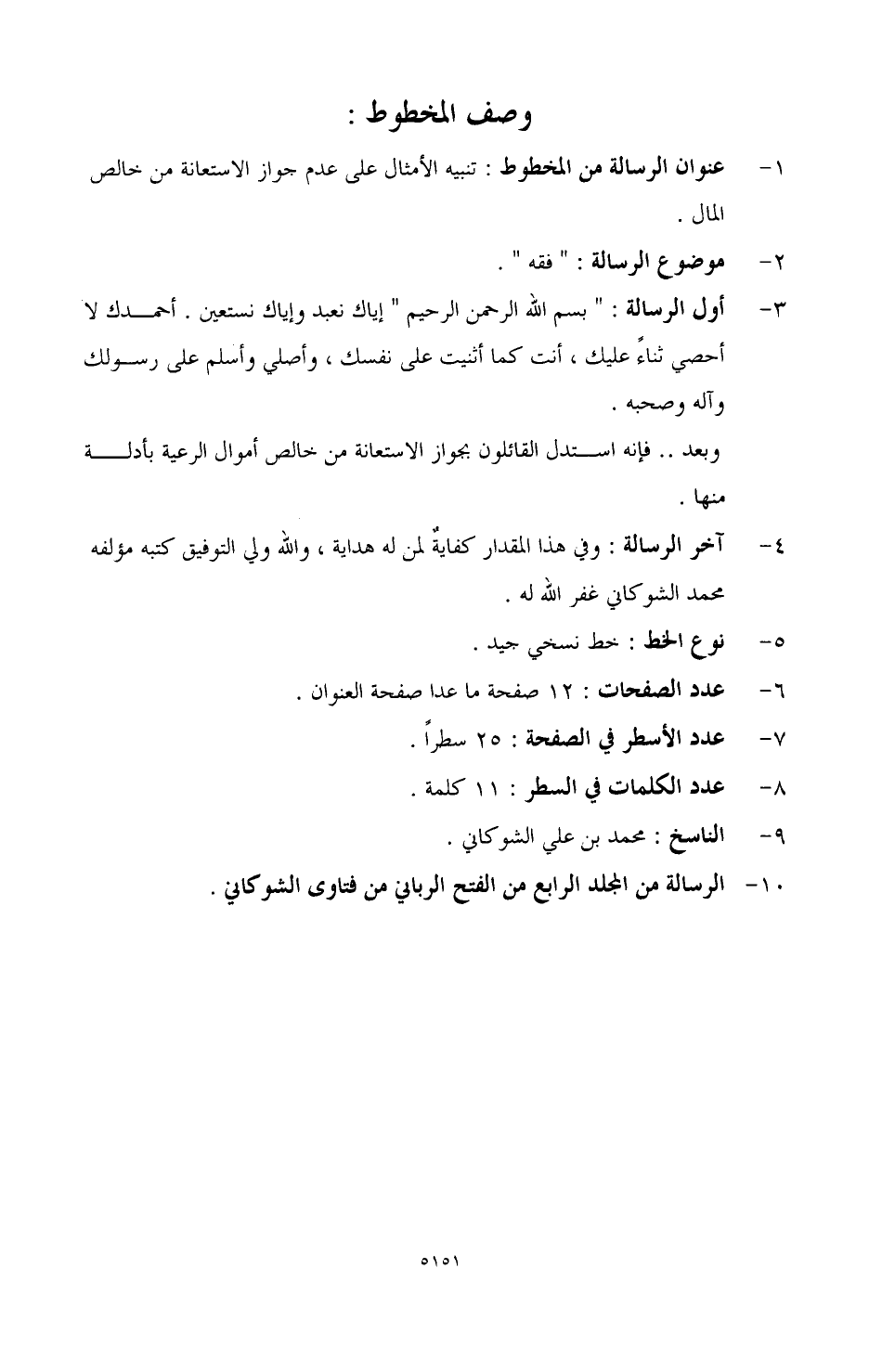 10 - الرسالة من المجلد الرابع من (الفتح الرباني من فتاوى الشوكاني).