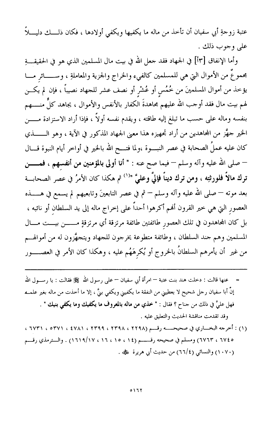 وأما الإنفاق [3 أ] في الجهاد فقد جعل الله في بيت مال المسلمين الذي هو في الحقيقة مجموع من الأموال التي هي للمسلمين كالفيء والخراج والجزية والمعاملة، وسائر ما يؤخذ من أموال المسلمين من خمس أو عشر أو نصف عشر للجهاد نصيبًا، فإن لم يكن لهم بيت مال فقد أوجب الله عليهم مجاهدة الكفار بالأنفس والأموال، يجاهد كل منهم بنفسه وماله على حسب ما تبلغ إليه طاقته، ويقدم نفسه أولًا، فإذا أراد الاستزادة من الخير جهز من المجاهدين من أراد تجهيزه هذا معنى الجهاد المذكور في الآية، وهو الذي كان عليه عمل الصحابة في عصر النبوة، ولما فتح الله بالخير في أواخر أيام النبوة قال - صَلَّى اللهُ عَلَيْهِ وَآلِهِ وَسَلَّمَ - فيما صح عنه: "أنا أولى بالمؤمنين من أنفسهم، فمن ترك مالًا فلورثته، ومن ترك دينًا فإلي وعلي" (¬1) ثم هكذا كان الأمر في عصر الصحابة بعد موته - صَلَّى اللهُ عَلَيْهِ وَآلِهِ وَسَلَّمَ - ثم عصر التابعين وتابعيهم لم يسمع في هذه العصور التي هي خير القرون أنهم أكرهوا أحدًا على إخراج ماله إلى يد السلطان أو نائبه، بل كان المجاهدون في تلك العصور طائفتين؛ طائفة مرتزقة أي مرتزقة من بيت مال المسلمين وهم جند السلطان، وطائفة متطوعة يخرجون للجهاد ويتجهزون له من أموالهم من غير أن يأمرهم السلطان بالخروج أو يكرههم عليه، وهكذا كان الأمر في العصور