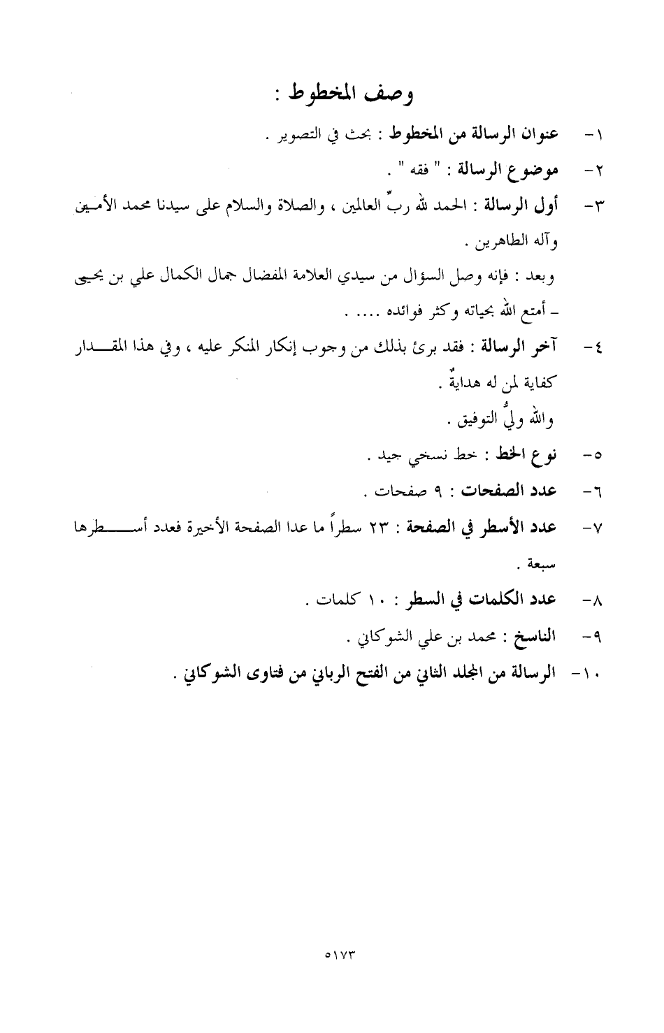 10 - الرسالة من المجلد الثاني من الفتح الرباني من فتاوى الشوكاني.