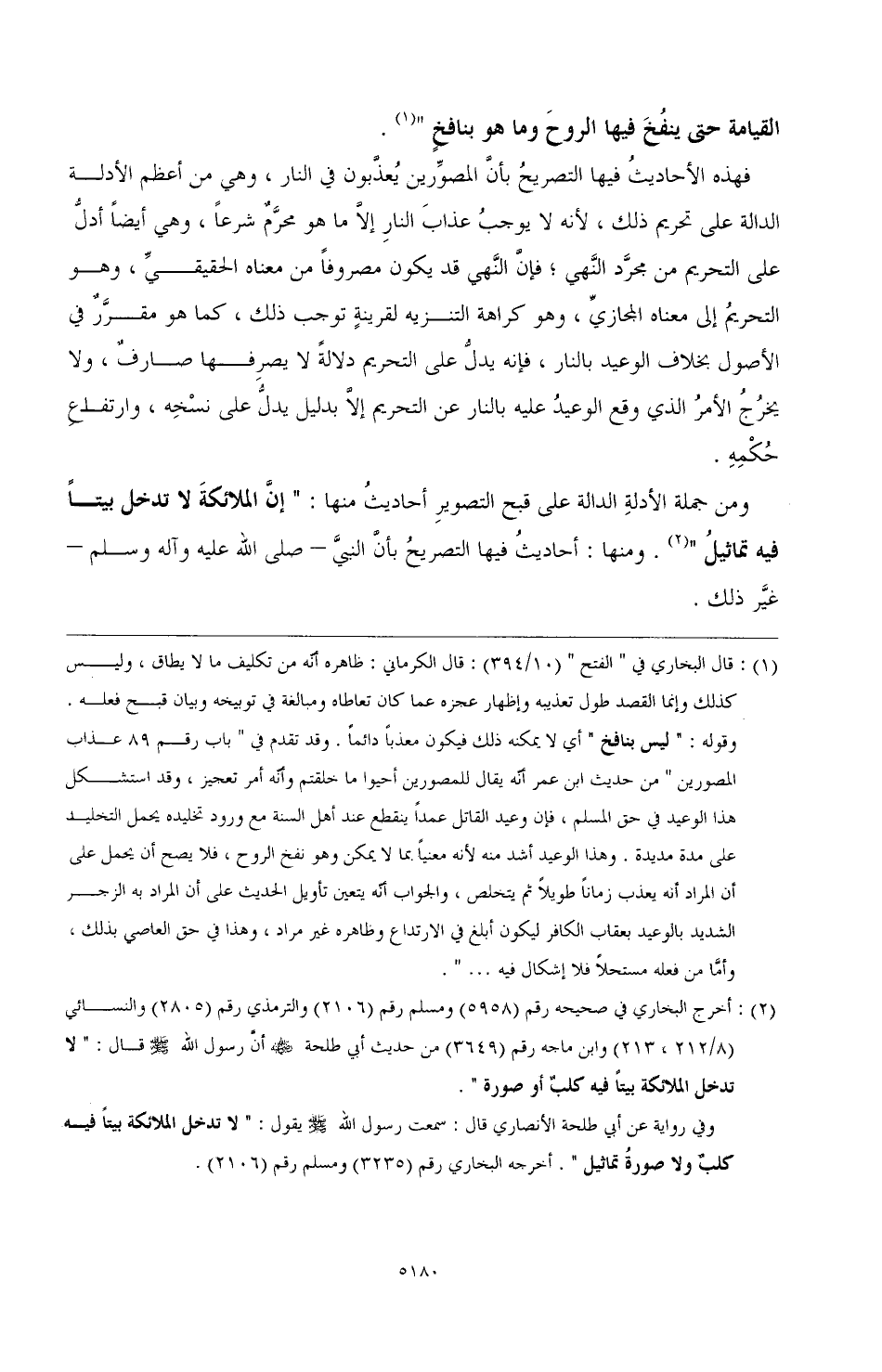 (¬2) أخرج البخاري في صحيحه رقم (5958) ومسلم رقم (2106) والترمذي رقم (2805) والنسائي رقم (8/ 212، 213) وابن ماجه رقم (3649) من حديث أبي طلحة رضي الله عنه أن رسول الله صَلَّى اللهُ عَلَيْهِ وَسَلَّمَ قال: "لا تدخل الملائكة بيتًا فيه كلب أو صورة".