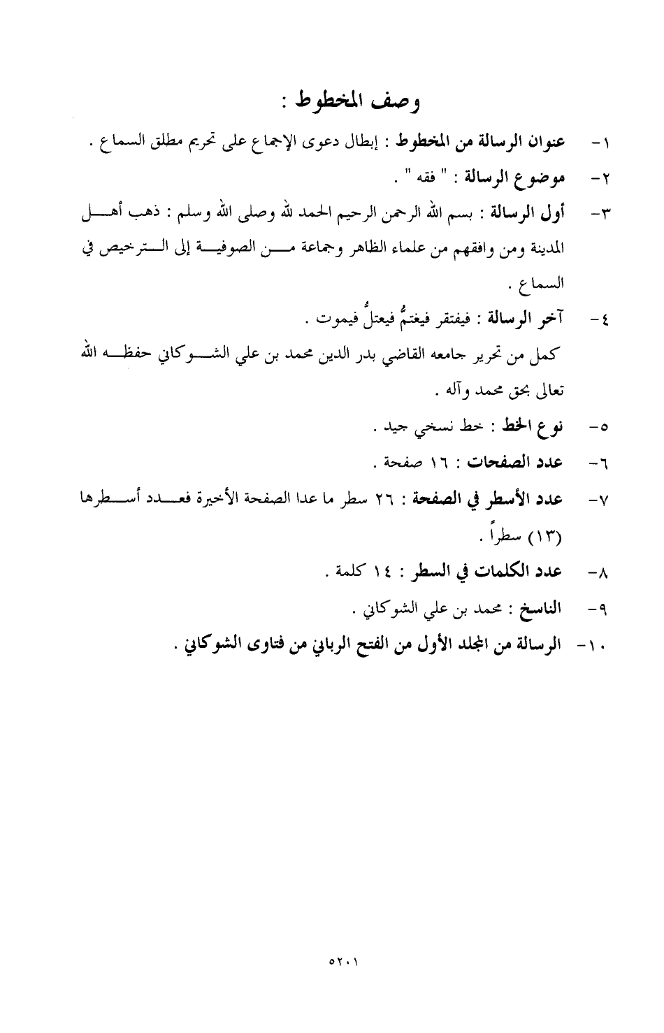 10 - الرسالة من المجلد الأول من "الفتح الرباني من فتاوى الشوكاني".