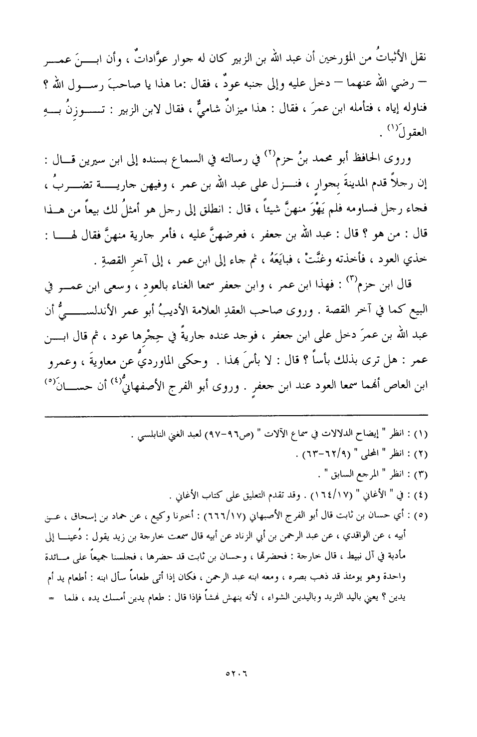 (¬1) انظر: "إيضاح الدلالات في سماع الآلات" (ص 96 - 97) لعبد الغني النابلسي