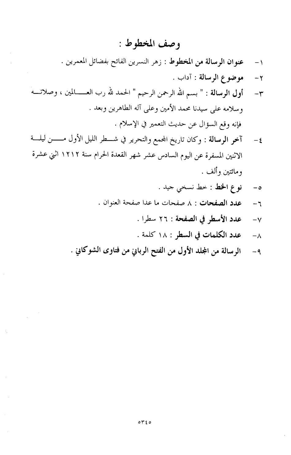 9 - الرسالة من المجلد الأول من الفتح الرباني من فتاوى الشوكاني.