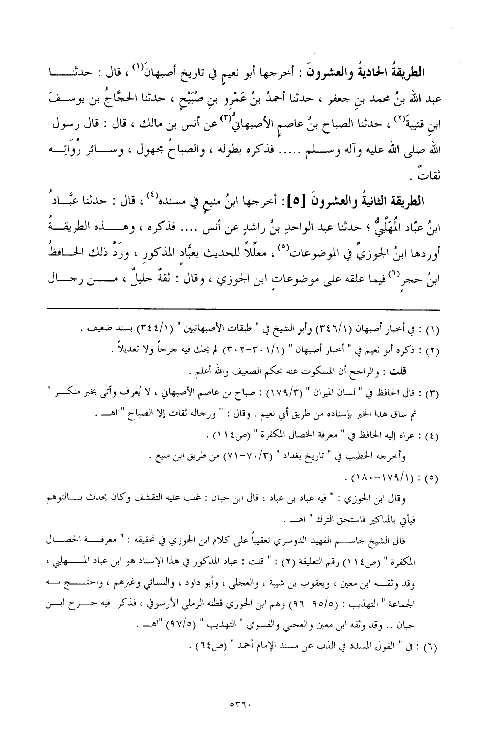 (¬3) قال الحافظ في "لسان الميزان" (3/ 179): صباح بن عاصم الأصبهاني، لا يعرف وأتى بخبر منكر" ثم ساق هذا الخبر بإسناده من طريق أبي نعيم. وقال: "ورجاله ثقات إلا الصباح" اهـ.