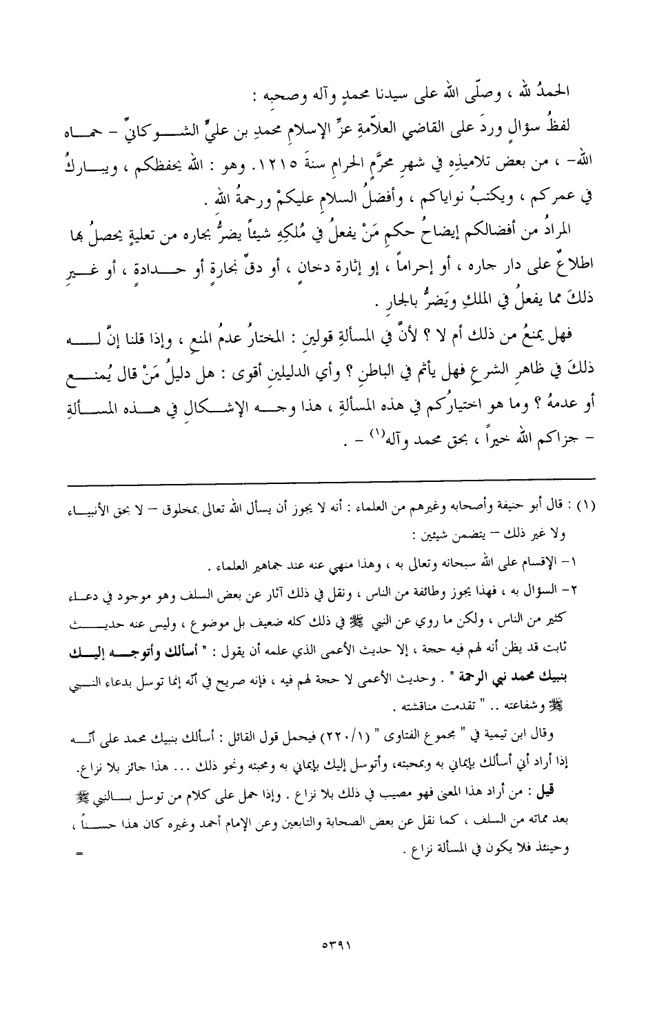 (¬1) قال أبو حنيفة وأصحابه وغيرهم من العلماء: إنه لا يجوز أن يسأل الله تعالى بمخلوق - لا بحق الأنبياء ولا غير ذلك - يتضمن شيئين: