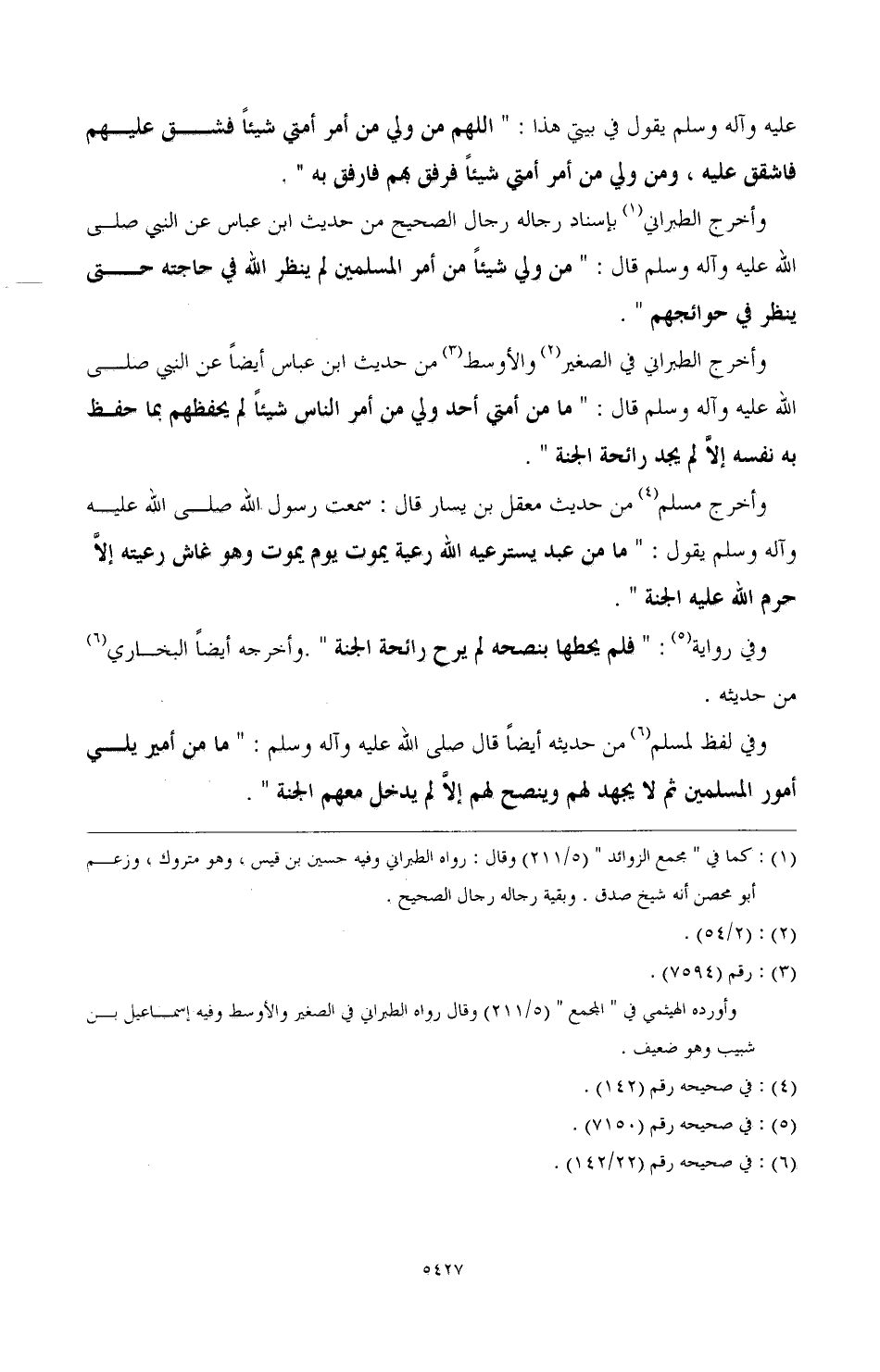 وأخرج مسلم (¬4) من حديث معقل بن يسار قال: سمعت رسول الله صلى الله عليه آله وسلم يقول: " ما من عبد يسترعيه الله رعية يموت يوم يموت وهو غاش رعيته إلا حرم الله عليه الجنة ".