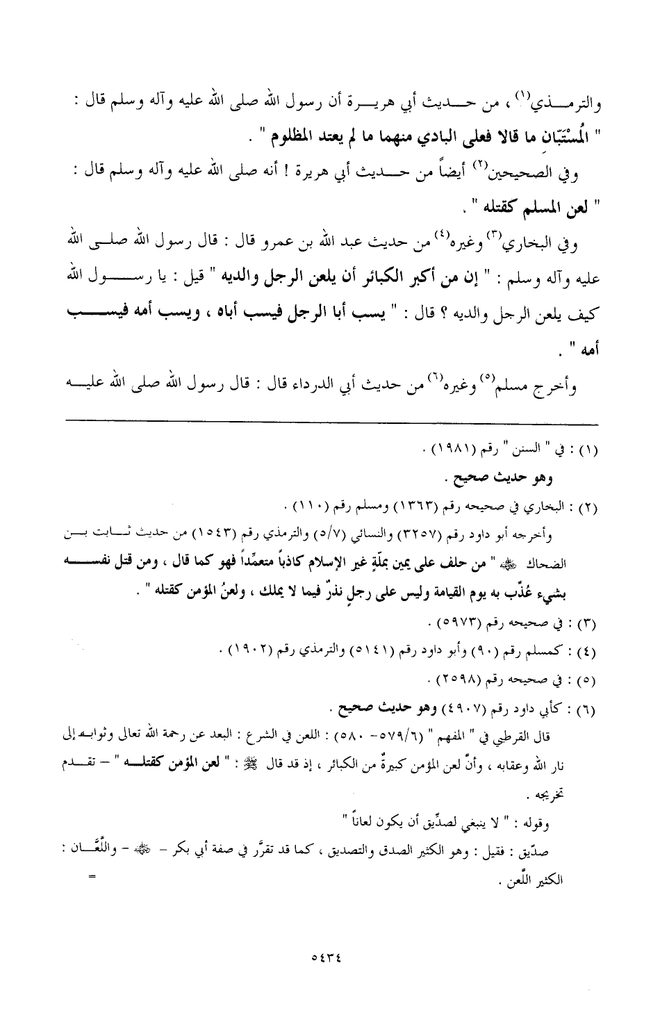 وفي الصحيحين (¬2) أيضًا من حديث أبي هريرة أنه صَلَّى اللهُ عَلَيْهِ وَآلِهِ وَسَلَّمَ قال: " لعن المسلم كقتله ".