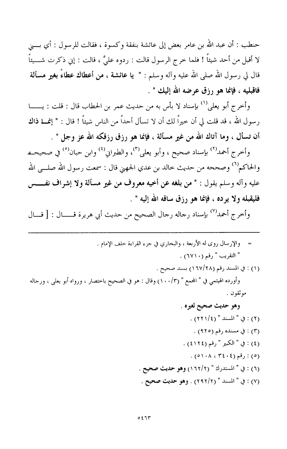 وأخرج أحمد (¬2) بإسناد صحيح، وأبو يعلى (¬3)، والطبراني (¬4)، وابن حبان (¬5) في صحيحه والحاكم (¬6) وصححه من حديث خالد بن عدي الجهني قال: سمعت رسول الله صَلَّى اللهُ عَلَيْهِ وَآلِهِ وَسَلَّمَ يقول: " من بلغه عن أخيه معروف من غير مسألة ولا إشراف نفس فليقبله ولا يرده، فإنما هو رزق ساقه الله إليه ".