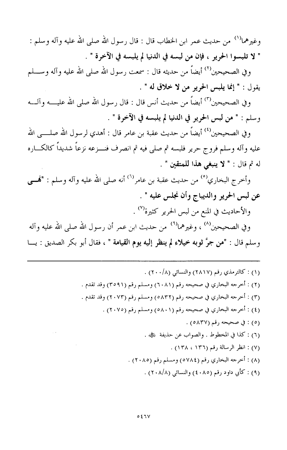 والأحاديث في المنع من لبس الحرير كثيرة (¬7).